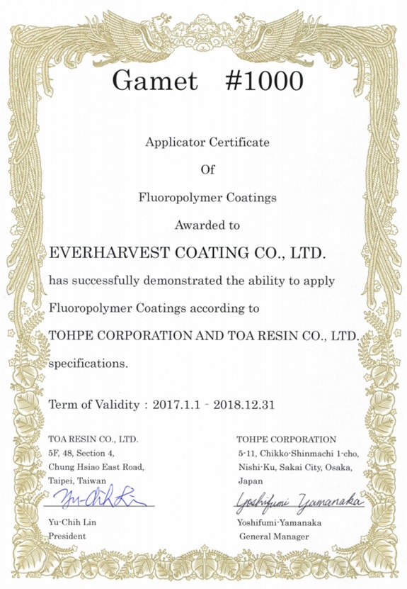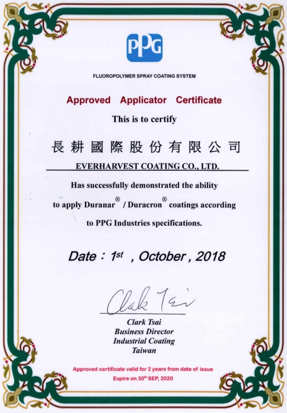 由 Kynar500及 Hynar500的樹脂原製造廠,嚴格審核塗料製造廠,確認製造的能力及品質 ,